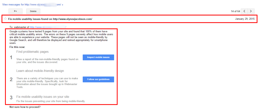 If you’re already set up, check for a message that look like this one below notifying you that your site may not be mobile-friendly.